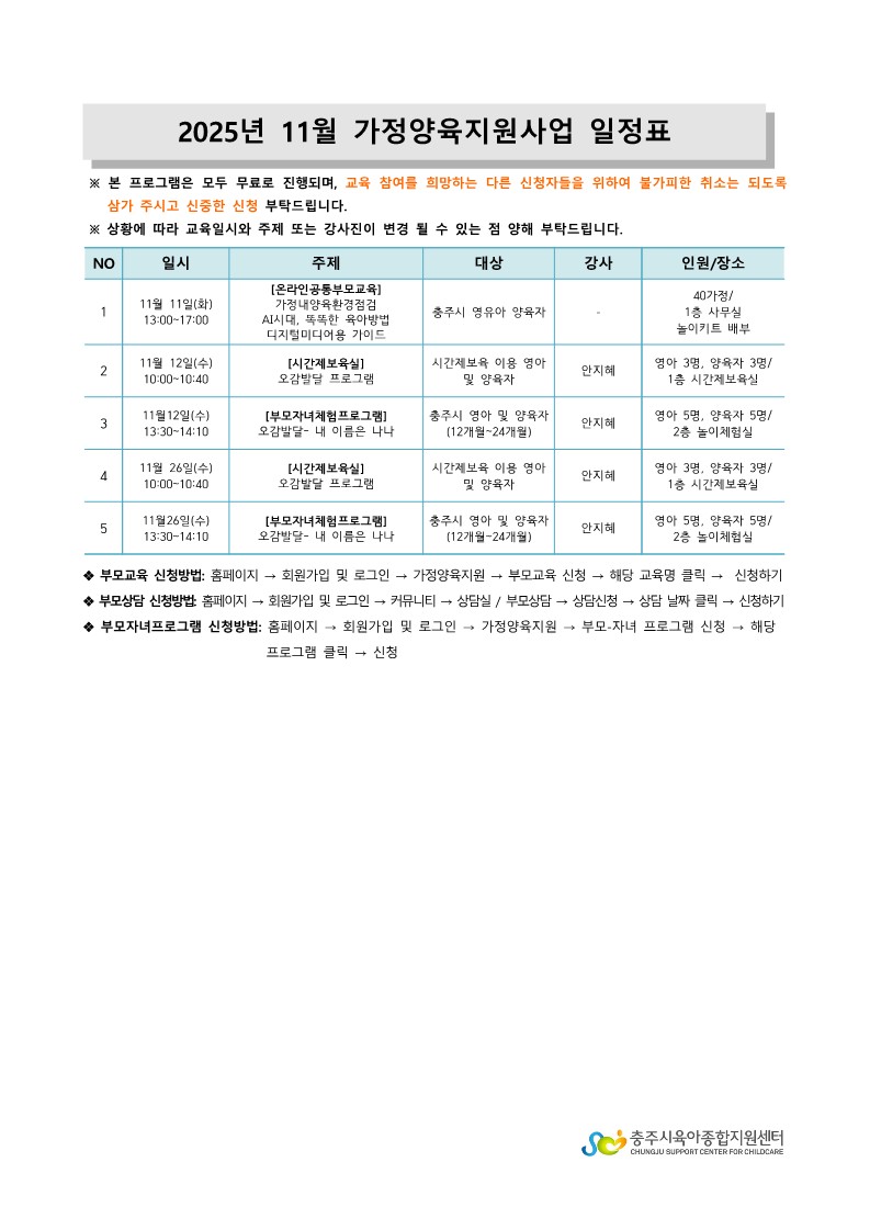 [°¡Á¤¾çÀ°Áö¿ø»ç¾÷] 11¿ù °¡Á¤¾çÀ°Áö¿ø»ç¾÷ ÀÏÁ¤ ¾È³»