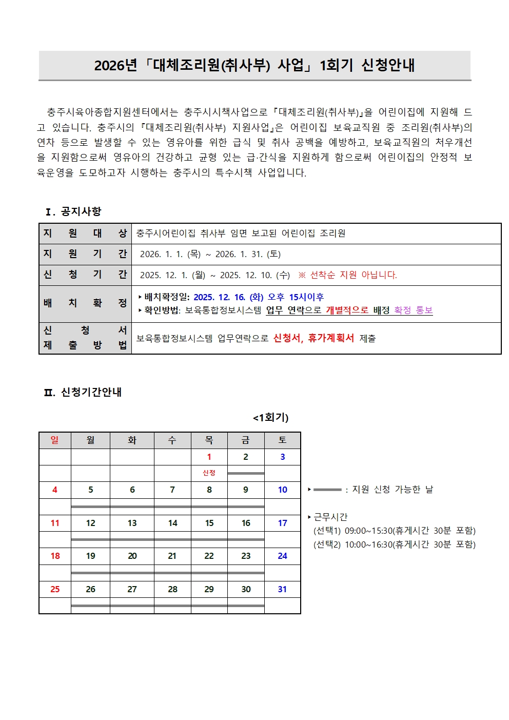 Á¶¸®¿ø(Ãë»çºÎ)Áö¿ø»ç¾÷] 2026³â 1ȸ±â ½Åû¾È³»