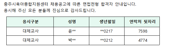 [ä¿ë°á°ú] ÃæÁÖ½ÃÀ°¾ÆÁ¾ÇÕÁö¿ø¼¾ÅÍ Ã¤¿ë °á°ú ¾È³»