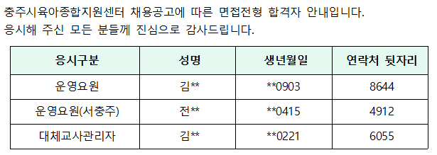 [ä¿ë°á°ú] ÃæÁÖ½ÃÀ°¾ÆÁ¾ÇÕÁö¿ø¼¾ÅÍ Ã¤¿ë °á°ú ¾È³»