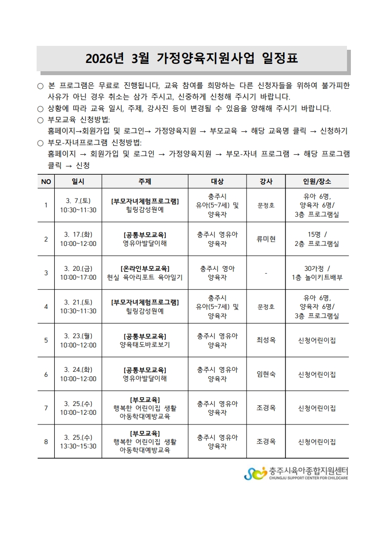 [°¡Á¤¾çÀ°Áö¿ø»ç¾÷] 3¿ù °¡Á¤¾çÀ°Áö¿ø»ç¾÷ ÀÏÁ¤Ç¥