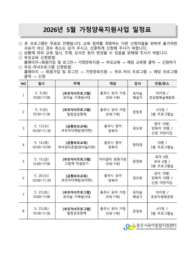 [°¡Á¤¾çÀ°Áö¿ø»ç¾÷] 5¿ù °¡Á¤¾çÀ°Áö¿ø»ç¾÷ ÀÏÁ¤Ç¥