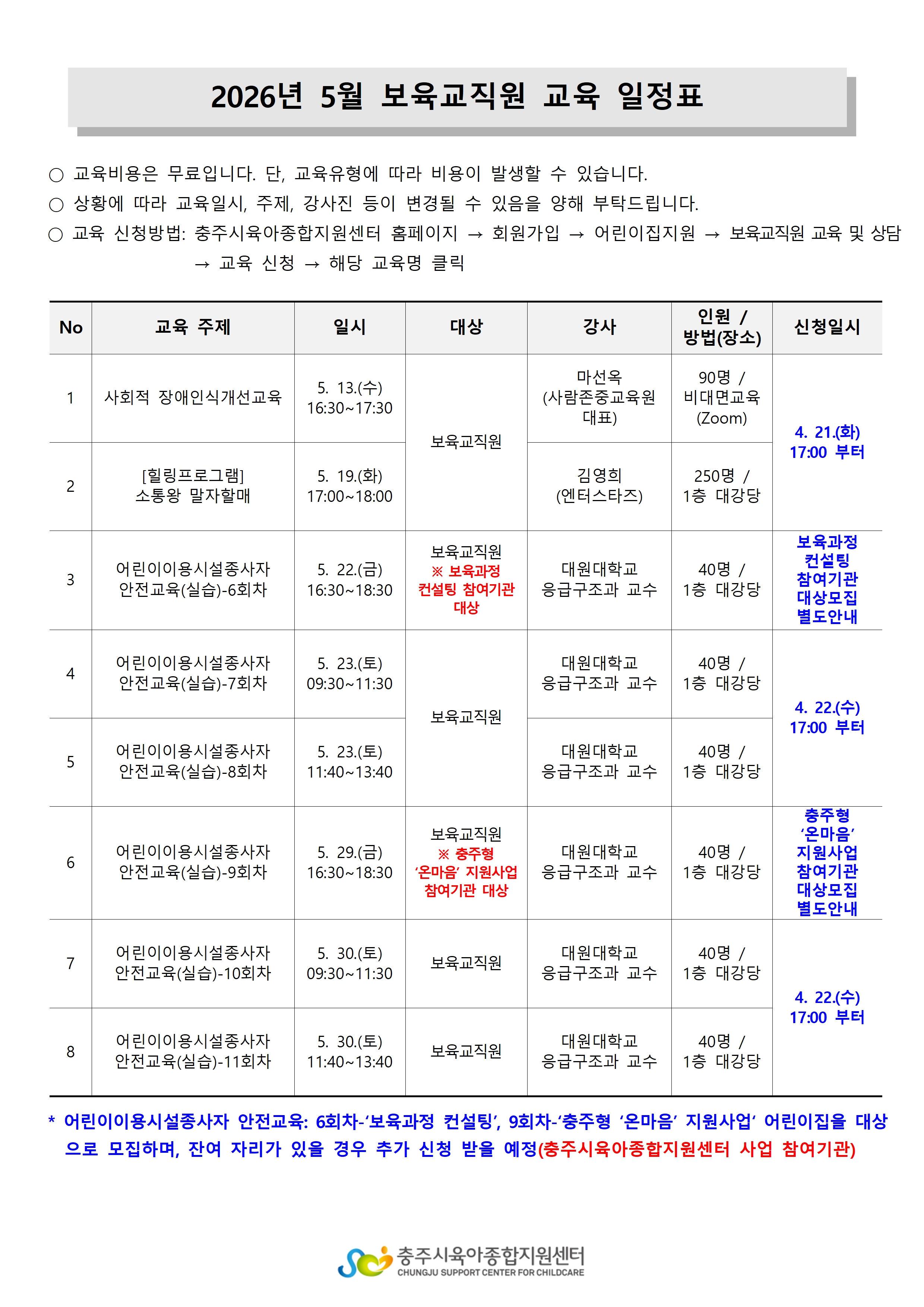 [¾î¸°ÀÌÁýÁö¿ø»ç¾÷] 5¿ù º¸À°±³Á÷¿ø ±³À° ÀÏÁ¤ ¾È³»