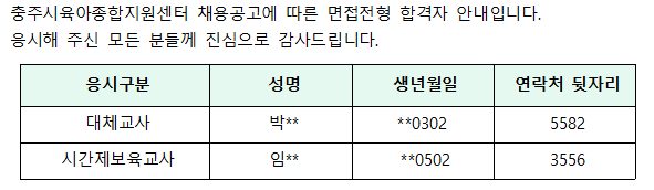 [ä¿ë°á°ú] ÃæÁÖ½ÃÀ°¾ÆÁ¾ÇÕÁö¿ø¼¾ÅÍ Ã¤¿ë °á°ú ¾È³»