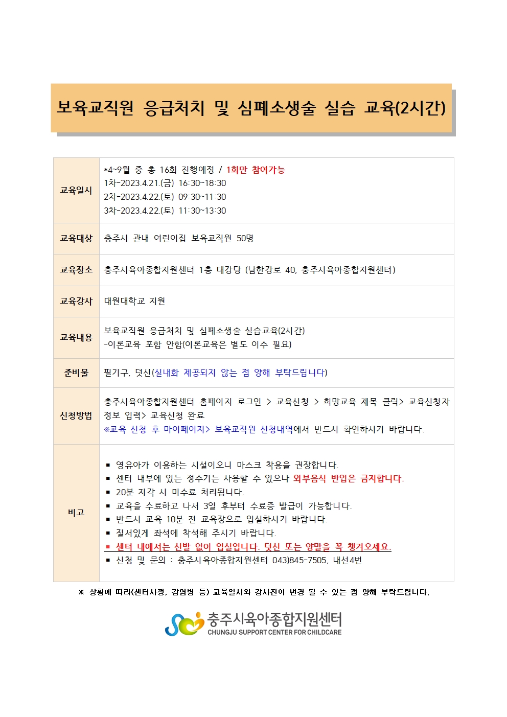 | [º¸À°±³Á÷¿ø ±³À°] 1Â÷ ÀÀ±Þóġ ¹× ½ÉÆó¼Ò»ý¼ú ½Ç½À±³À° | |||
