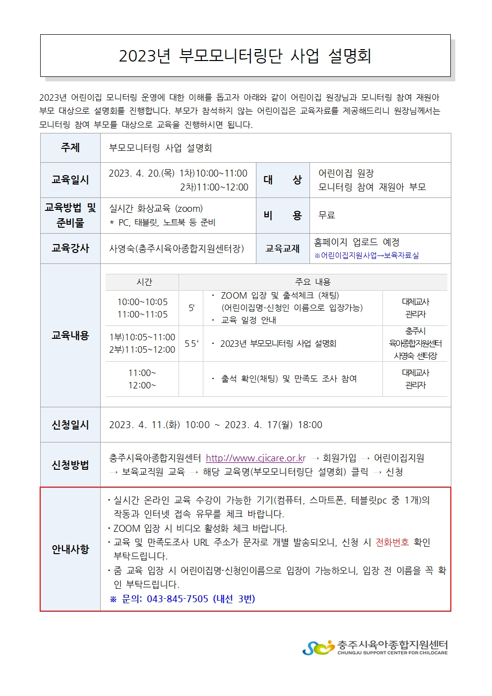 | 2023³â ºÎ¸ð¸ð´ÏÅ͸µ´Ü »ç¾÷ ¼³¸íȸ(2Â÷) | |||