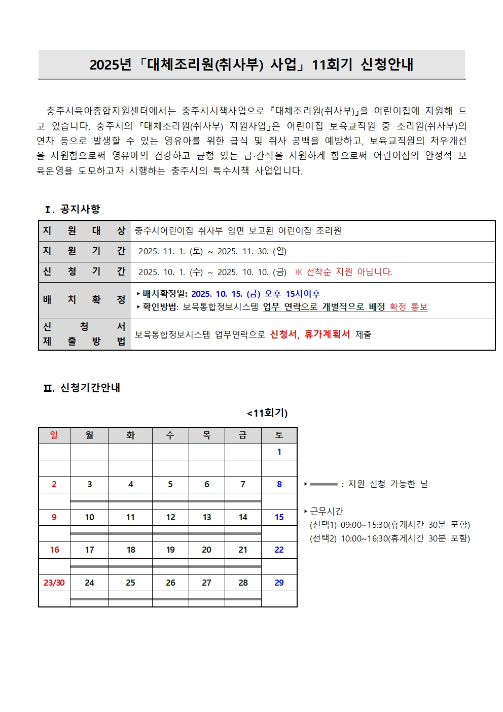 Á¶¸®¿ø(Ãë»çºÎ)Áö¿ø»ç¾÷] 2025³â 11ȸ±â ½Åû¾È³»