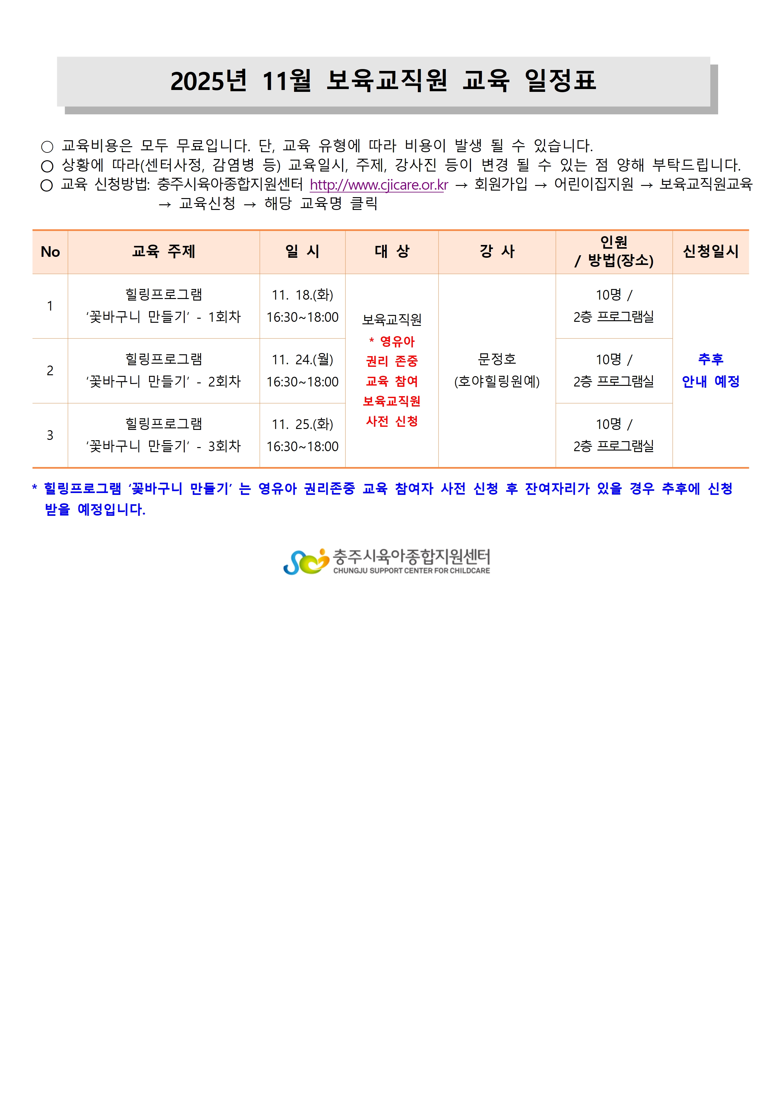 [¾î¸°ÀÌÁýÁö¿ø»ç¾÷] 11¿ù º¸À°±³Á÷¿ø ±³À° ÀÏÁ¤ ¾È³»