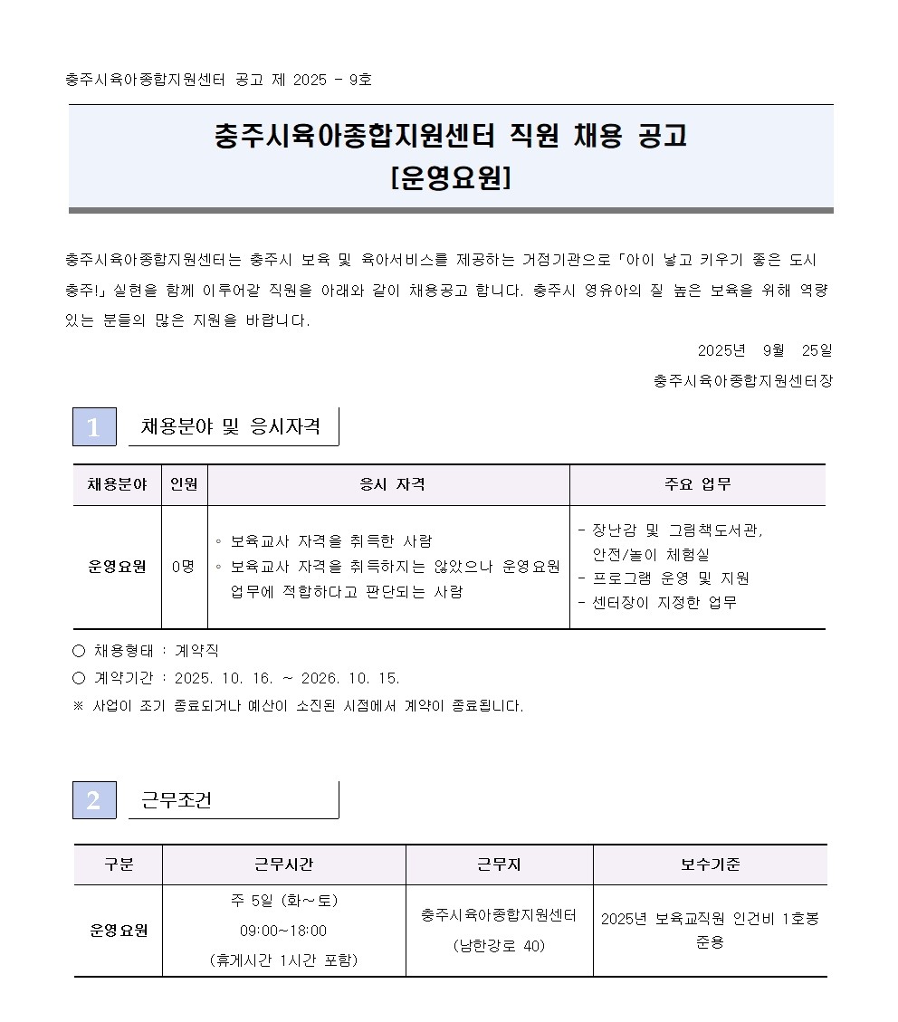 [ä¿ë] ÃæÁÖ½ÃÀ°¾ÆÁ¾ÇÕÁö¿ø¼¾ÅÍ Á÷¿ø ä¿ë°ø°í (¿î¿µ¿ä¿ø)