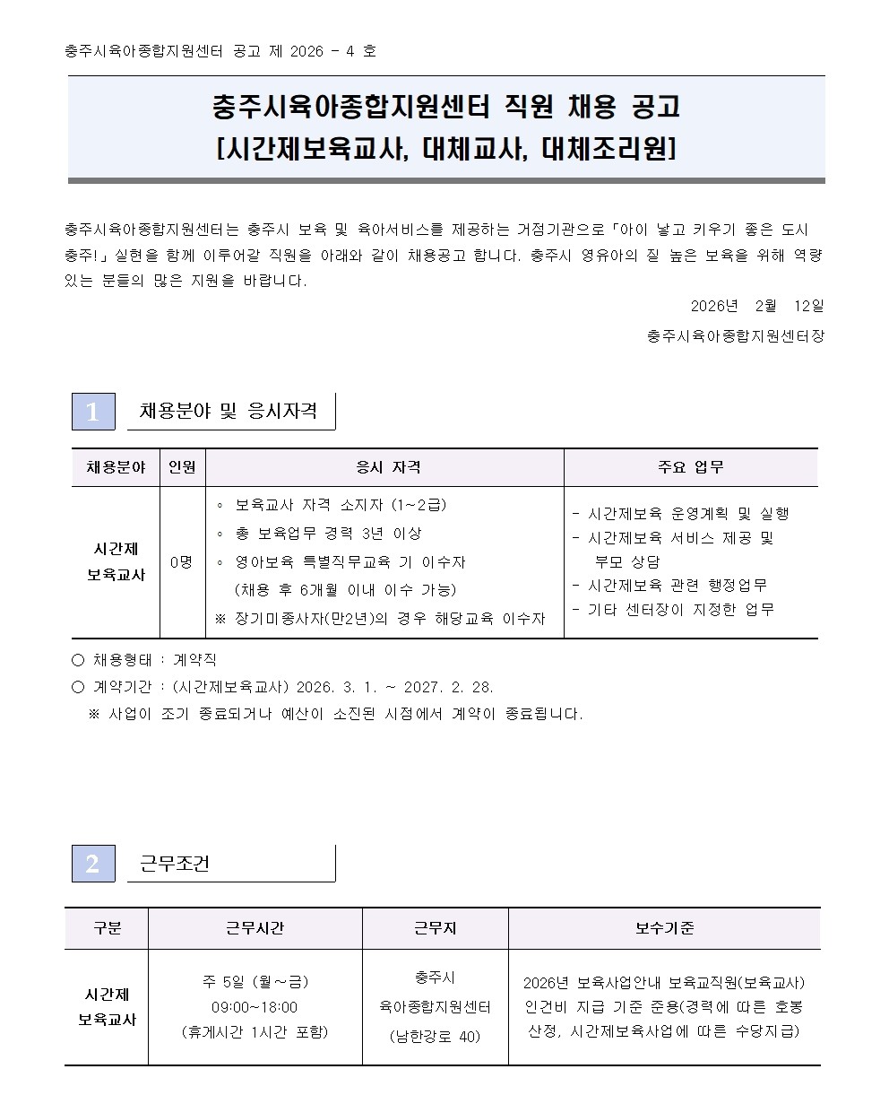 [ä¿ë] ÃæÁÖ½ÃÀ°¾ÆÁ¾ÇÕÁö¿ø¼¾ÅÍ Á÷¿ø ä¿ë°ø°í (½Ã°£Á¦º¸À°±³»ç)