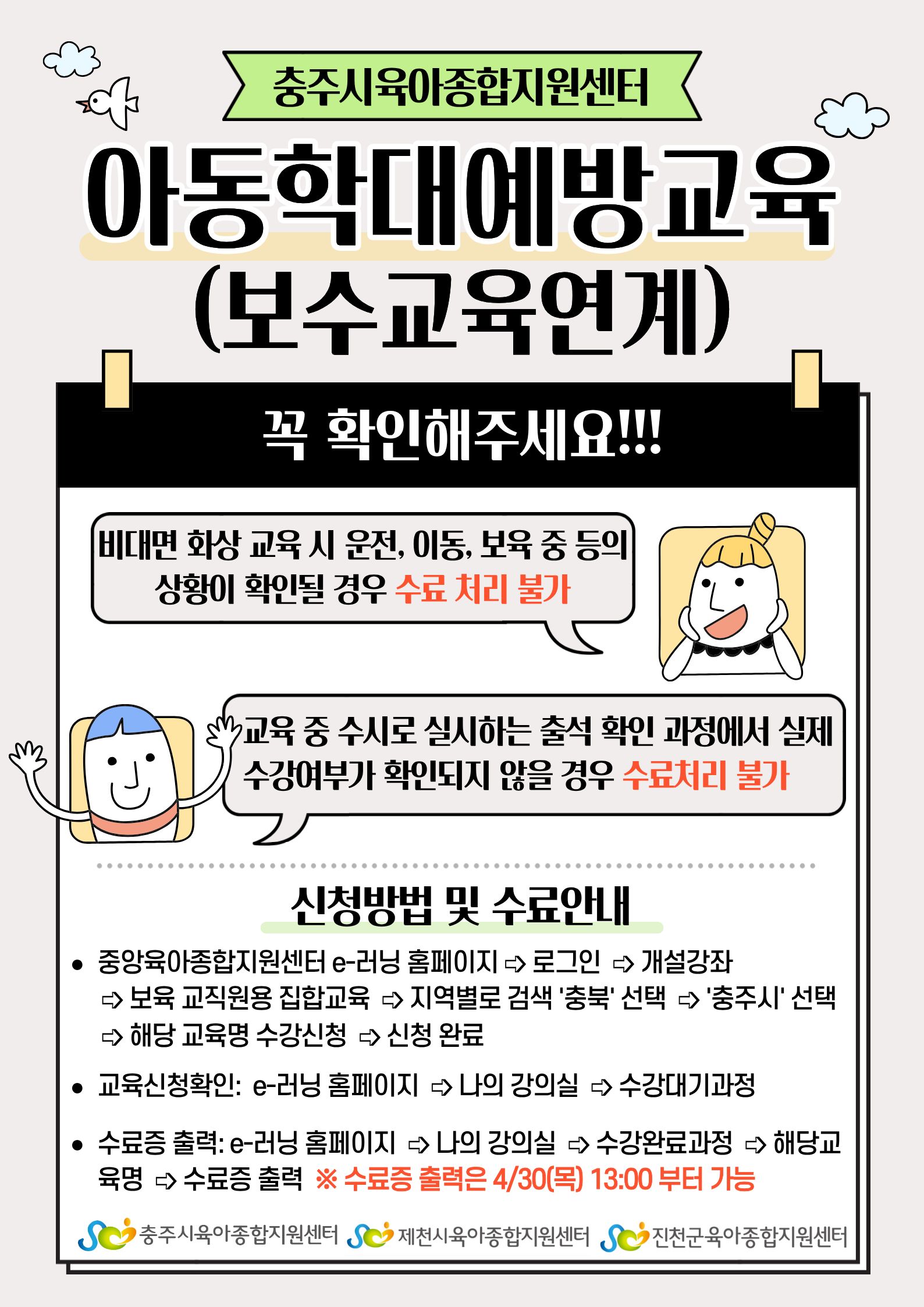 | ±âŸ»çÇ× | * ½Åû¹æ¹ý: Áß¾ÓÀ°¾ÆÁ¾ÇÕÁö¿ø¼¾ÅÍ e-·¯´× ȨÆäÀÌÁö ➩ ·Î±×ÀÎ ➩ °³¼³°Á ➩ º¸À° ±³Á÷¿ø¿ë ÁýÇÕ±³À° ➩ Áö¿ªº°·Î °Ë»ö ÃæºÏ ¼±Åà ➩ ÃæÁֽà ¼±Åà ➩ ÇØ´ç ±³À°¸í ¼ö°½Åû ➩ ½Åû ¿Ï·á * ½ÅûÀü ¾î¸°ÀÌÁý¸í°ú ÈÞ´ëÀüȹøÈ£¸¦ È®ÀÎÇØÁֽñ⠹ٶø´Ï´Ù. * ÇùÁ¶»çÇ× - ±³À° ½ÃÀÛ 5ºÐ Àü±îÁö ÀÔÀåÇØÁֽñ⠹ٶø´Ï´Ù. - ±³À° ½ÃÀÛ 20ºÐ ÀÌÈÄ ÀÔÀå ½Ã ¼ö·á󸮰¡ ºÒ°¡ÇÕ´Ï´Ù. - ÀÔÀå ½Ã ¾î¸°ÀÌÁý¸í-À̸§À¸·Î ¼³Á¤ÇØÁֽñ⠹ٶø´Ï´Ù. - À̵¿ Áß ¶Ç´Â ¿îÀü Áß ¼ö°Àº ºÒ°¡ÇÕ´Ï´Ù. |