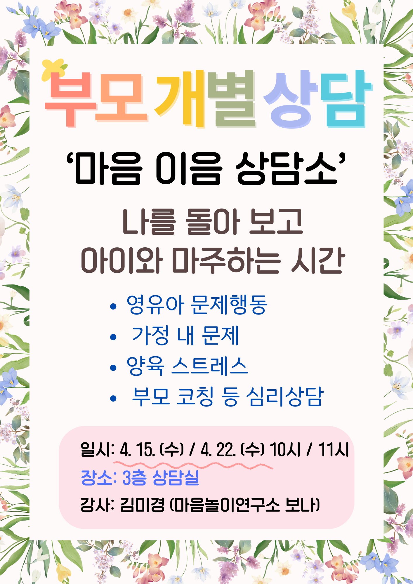 [°³º°»ó´ã] 4¿ù ºÎ¸ð ¹× ¾çÀ°ÀÚ °³º° »ó´ã (4. 22. (¼ö) 11:00~ ) 2ȸÂ÷